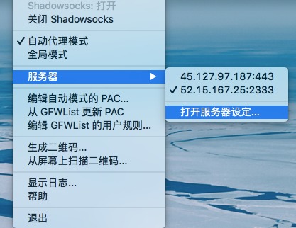 在服务器设定中输入正确ip, 端口,加密方式和密码,开启后便可以开始科学上网了~